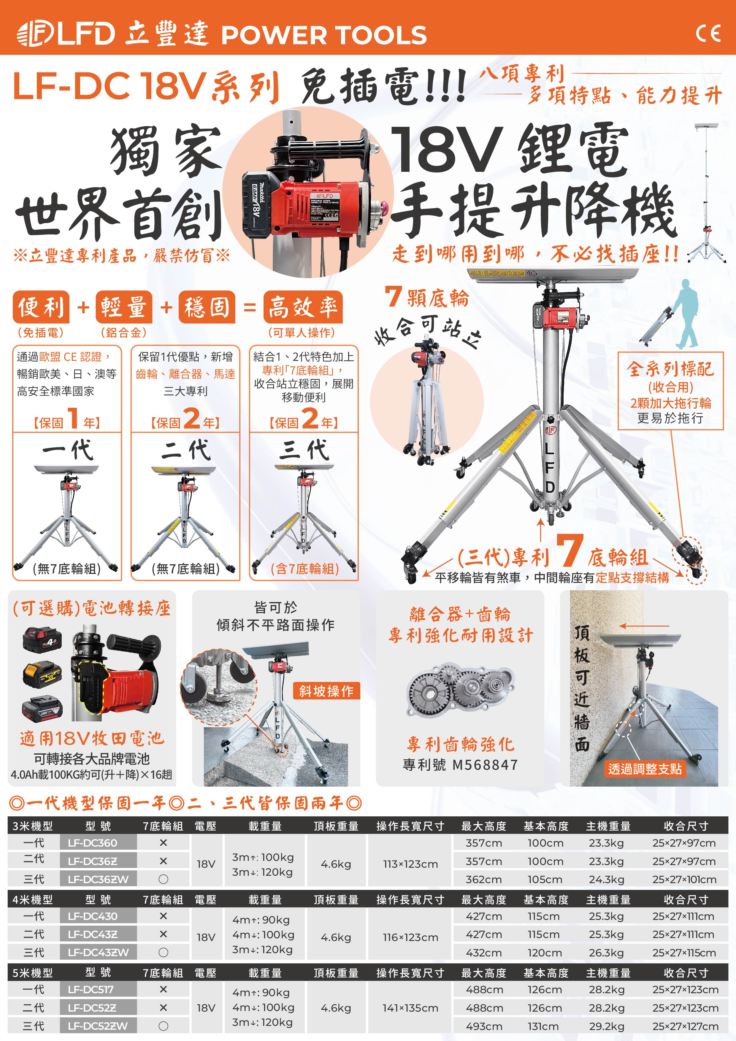 LF-DC系列 18V 鋰電 3  手提式升降機